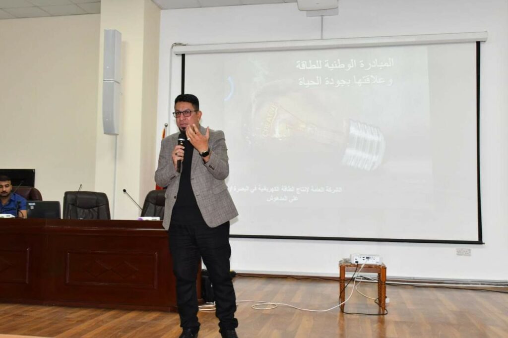 بجودة الحياة) قدمها عضو الفريق الاستاذ “علي عبد الحسين مدهوش”ممثل انتاج كهرباءالجنوب تناولت ضرورة تعزيز مفهوم الاستدامة في مكان العمل مع عرض اهم الطرق التي يمكن اعتمادها في تحقيق ذلك كما استعرضت عدد من الدراسات المنشورة في مجال اعتماد الممارسات المستدامة من قبل المؤسسات والدول ومدى تأثيرها على تقليل البصمة الكاربونية والتلوثات البيئية.