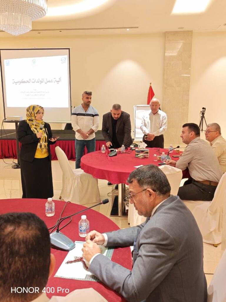 افتتحت السيدة شيماء مظهر السبع منهاج أعمال الورشة برفقة فريق فني مختص عن شرح آليات جرد و تنظيم عمل المولدات الاهلية و الحكومية بشكل تفصيلي، بهدف توضيحها وتسهيل تطبيقها من قبل الفرق التابعة للوزارات والمؤسسات الحكومية ورفع بياناتها على منصة اور الوطنية ضمن البرنامج الالكتروني الخاص بذلك المنجز من قبل مبرمج المركز الوطني للتحول الرقمي وصولا لتحقيق قاعدة بيانات متكاملة والحصول على نتائج دقيقة وفاعلة.